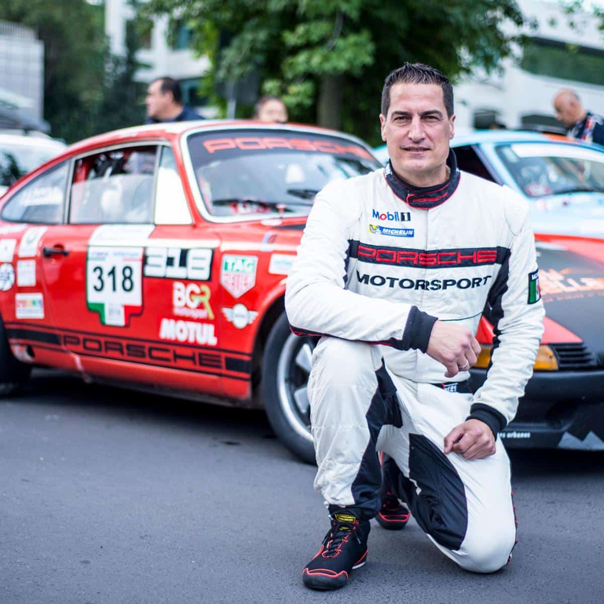 En su caso, corre en un modelo 1974, de 6 cilindros, con caja de velocidades original, motor 3.6, con 1050 kilos de peso y que alcanza una velocidad punta de 204 kilómetros por hora. Compite en la categoría “Histórica B plus” y cuyo nombre es “Aquiles”.